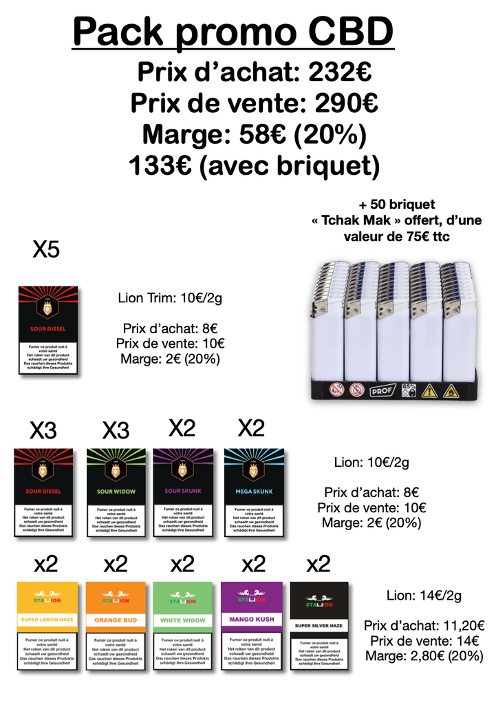 0001,2: Pack Promo avec Sour Diesel + briquet offert